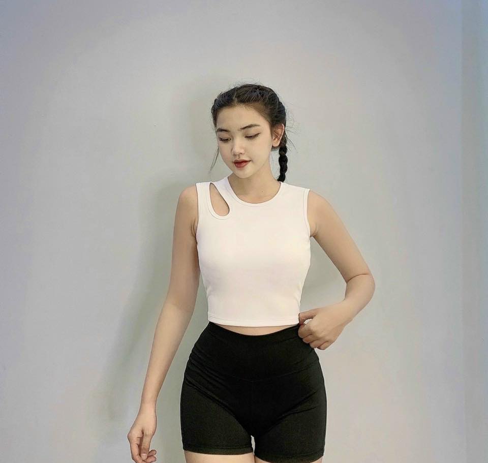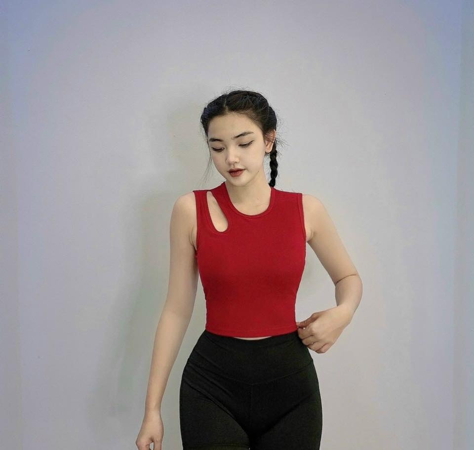✔️ Chất vải thun gân co giãn , ko mút lót, bạn tha hồ thoải mái khi luyện tập.